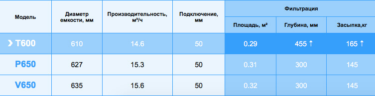 Фильтр Emaux T600 предназначен для работы при большем давлении и температуре жидкости, чем большинство аналогов рынка оборудования для бассейнов в этом классе. Выдерживает рабочее давление в 4 Бар. Фильтрующая площадь модели составляет 0.29 м2. Для засыпки рекомендуется использовать стеклянную (или кварц) засыпку массой до 165 кг. Фракция наполнителя 0-4-0.8 мм. Комплектуется 6-режимным клапаном нового образца с муфтами под трубу (клей) 1.5''/50 мм.